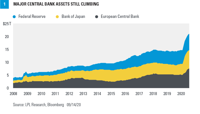 When seasons change, the major central banks meet. The Federal Reserve, European Central Bank, and Bank of Japan all met in September to discuss their outlooks on the economy and monetary policy going forward. Key observations from the central bank meetings include maintaining policy while keeping an eye on COVID-19.